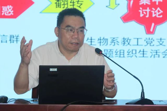华东师范大学生命科学学院教授、副院长姜晓东开展新时代高校党支部规范化建设实务培训,他从新时代高校党支部书记的要求、“双带头人”支部书记的工作方法、成长经历等方面进行阐释,分享了个人工作案例、党支部书记工作经验积累。
