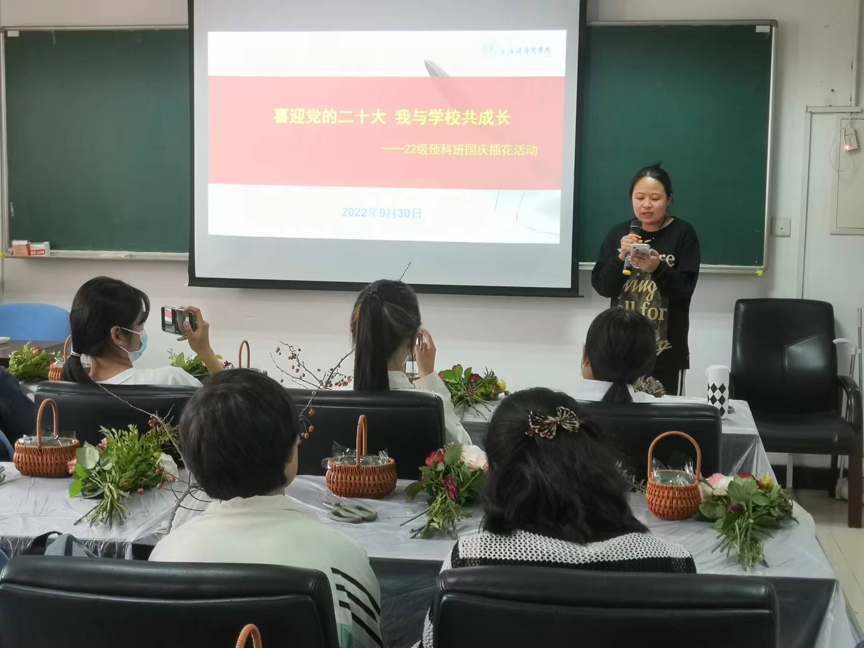 为了迎接祖国母亲73年华诞,喜迎党的二十大,弘扬爱国主义精神,积极倡导感恩祖国的良好风尚,基础医学院于9月30日组织2022级预科班同学与结对教师一起开展了“喜迎党的二十大 我与学校共成长”插花活动。院长杨智昉、党支部书记程伟出席。