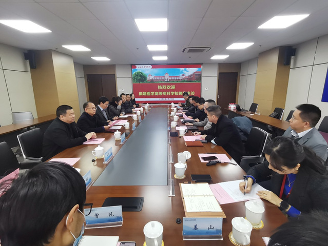 2月22日,曲靖医学高等专科学校校长何永文等一行12人来访我校,我校产学合作处、党委宣传部、基建处、图文信息中心、护理与健康管理学院、基础医学院、医学技术学院、实践教学中心负责人与来访嘉宾进行座谈交流。