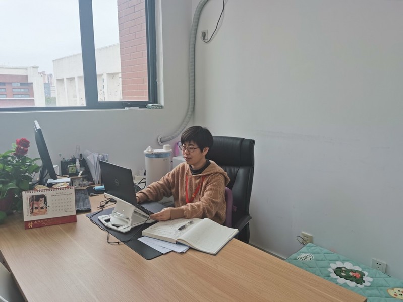 3月14日,校园准备封闭前,那立欣老师第一时间回到办公室,吃住、工作在办公室