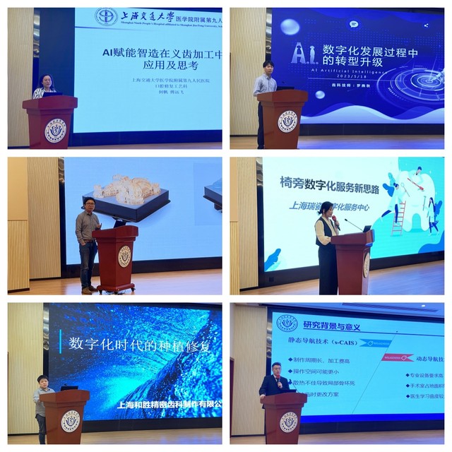 讲座中上海交通大学医学院附属第九人民医院口腔修复工艺科何帆、上海速诚义齿有限公司技术总监罗燕秋、上海慧丰牙科技术有限公司张勇、上海和胜精密齿科制作有限公司质量负责人主管技师雷文华、上海瑞瓷齿科技术有限公司技术总监庄文娟分别以《AI赋能制造在义齿加工中地应用和思考》《数字化发展中的转型升级》《数字化时代的种植修复》《数字化增材技术(3D打印)在口腔修复领域的应用》《椅旁数字化服务新思路》为题,从不同角度与与会人员分享了数字化发展对口腔行业以及从业人员的影响。