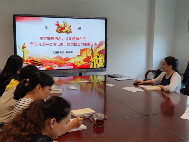 教学部副主任侯丽英首先作了题为“坚定理想信念,补足精神之钙”的专题党课,她结合个人学习体会和工作实际,主要从“为什么要坚定理想信念、理想信念包括哪些内容、如何更好地坚定理想信念”三个方面进行分享。她指出理想信念关乎国家和民族的前途命运,犹如定海神针,是共产党人的政治灵魂。作为一名党员,必须时刻坚定理想信念,筑牢精神之基,补足精神之钙。理想信念关乎共产党人、党员干部的安身立命之本,每一名党员都要严守政治纪律,在重大原则问题和大是大非面前,必须立场坚定、旗帜鲜明。党员领导干部作为“关键少数”,要发挥好“头雁”作用,自觉按照党员标准严格要求自己,吃苦在前、享受在后,在急难险重任务面前勇挑重担,经受得起重大政治考验,始终保持共产党人本色。
