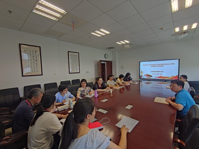 6月29日下午,文理教学部直属党支部在南苑2号楼302会议室召开学习贯彻习近平新时代中国特色社会主义思想主题教育专题党课,会议由党支部纪检监察委员焦建利主持,教学部全体党员参加。