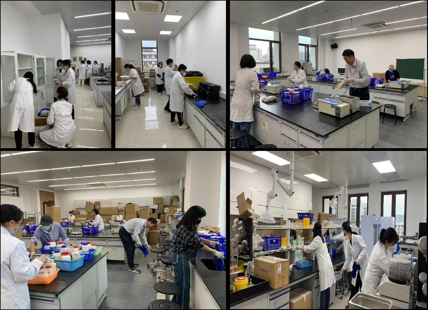 药学院八号楼改扩建工程为学院2023年度重点工作之一,是推动和保障学院高质量发展的关键工程,该项目自2023年6月中旬启动,经过暑期如火如荼的建设,在金秋十月即将迎来项目的竣工。为确保新学期实践教学活动的顺利开展,10月12日下午,药学院党员教师率先示范,在药学院党总支书记詹昌明的带领下集体前往南苑八号楼对已经交付的实验室进行整理清洁工作。党员同志们在实训中心主任和各教研室主任的指挥下,合理分工,默契配合,高质高效的完成了设备耗材的规整、台面橱柜的清洁以及地面的清扫等工作,确保了秋季学期实践教学工作能够按计划开展。此次党员志愿服务是党员为民服务的集中体现,药学院党员教师心系学院重点工作和师生权益,并不畏劳苦,积极行动,充分彰显了党员的先锋模范作用。