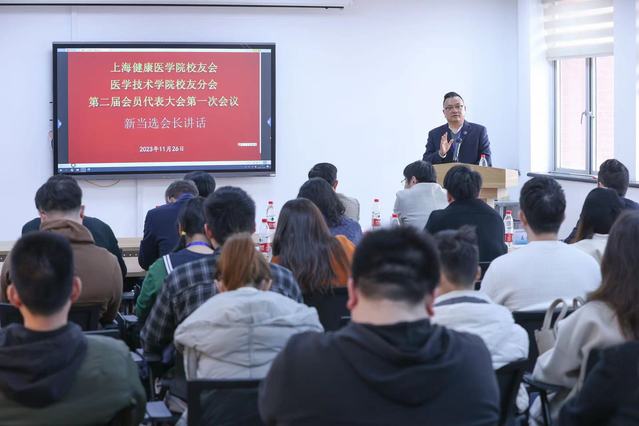 最后,新当选医学技术学院校友分会会长陈林军作表态发言。他代表校友会新一届理事会向与会的校友代表表示感谢。他指出,“参天之木,必有其根;怀山之水,必有其源”,学院就是校友们的“根”和“源”,也是校友们坚强的后盾。新一届理事会工作将继续秉承“团结、务实、创新、奉献”的校友会精神,坚持以服务校友为宗旨,以推动校友会事业发展为己任,进一步加强与校友的沟通联系,广泛开展各类活动,为校友提供更多更好的服务,积极参与社会公益事业,关注社会发展,为医学和健康事业的发展进步贡献更多力量!