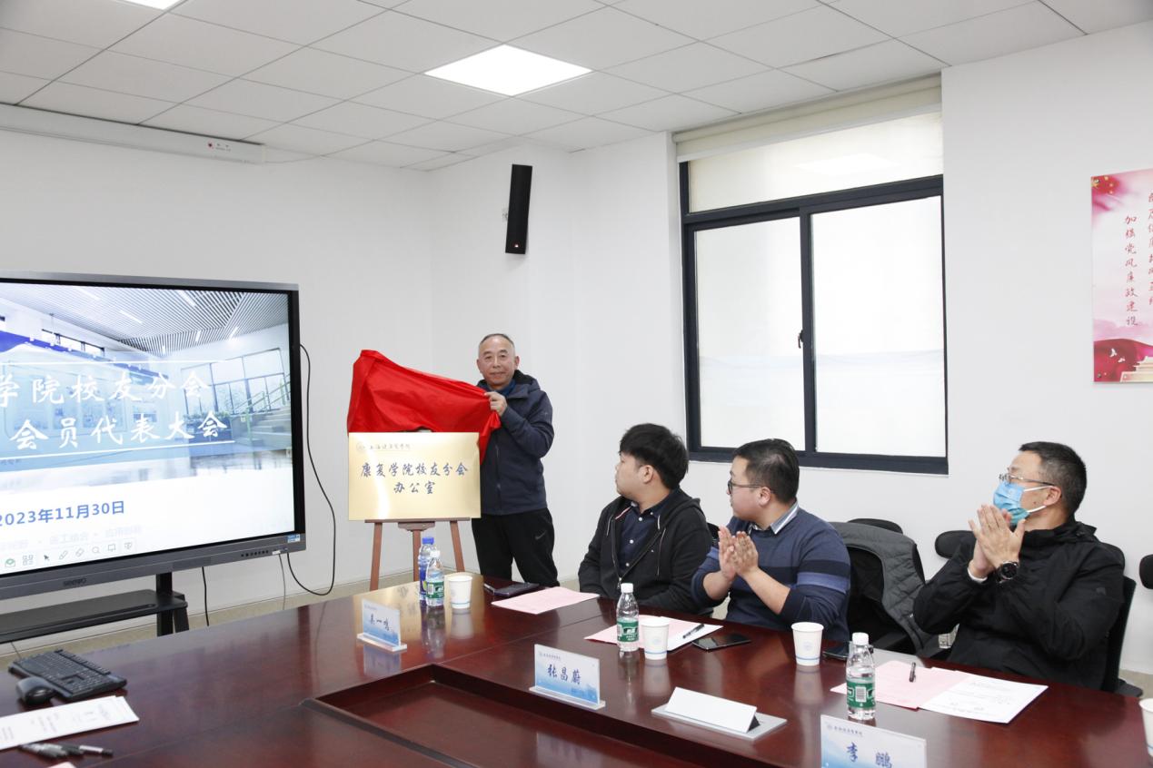 随后王红作为新一届校友分会会长讲话,王红表示新一届理事会将会严格遵守《校友会章程》,团结和带领校友会各位成员积极进取、不断加强校友之间、校友与母校之间的联系,增进了解和友谊,让校友会成为我们共同的家园,并宣布成立康复学院校友分会办公室,邀请荣誉会长王湧揭牌。