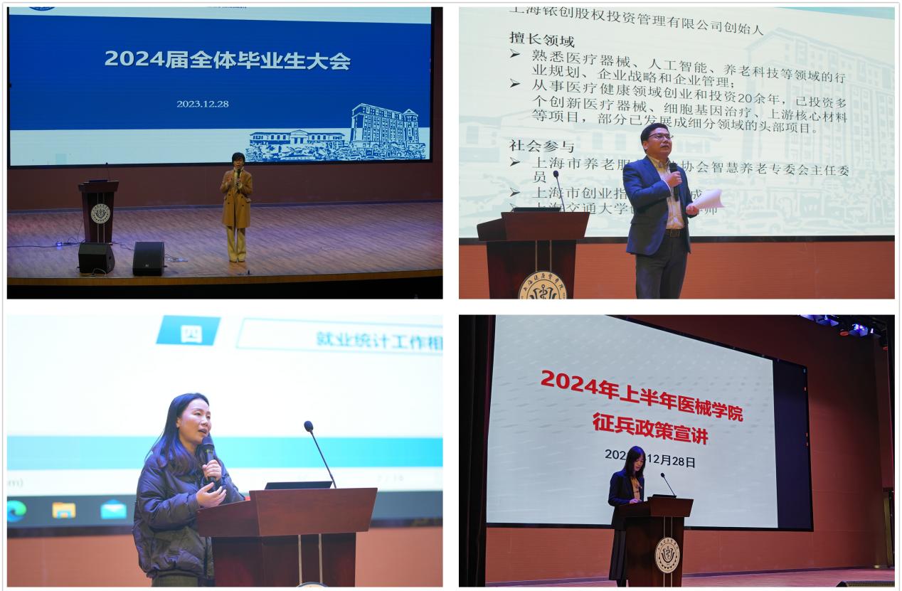 2023年12月28日下午,医疗器械学院在东苑800人报告厅召开2024届全体毕业生大会,学院党总支书记李晓欧、党总支副书记杨美,就业专员李越华、毕业班辅导员和2024届毕业生参加会议。会议由杨美主持。
