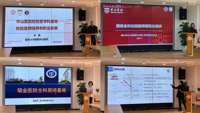 招聘会上,华山医院、瑞金医院和上海国龙医院等用人单位代表分别介绍医院情况。华山医院的检验医学科关明主任从检验医学科基地、检验医师培养和职业发展等方面进行详细介绍。全科医学科顾洁医生重点介绍了全科住院医师规范化培训。瑞金医院全科医学科的董建菁主任从瑞金医院的现况、重点学科与特色学科、全科师资团队等方面进行详细介绍。上海国龙医院作为民营医院代表,郭瑞赜书记重点介绍了医院特色学科和人才培养情况。