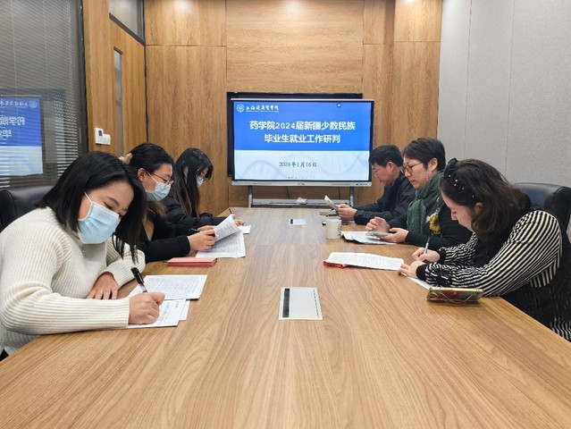 为深入学习贯彻党的二十大精神,坚决落实党中央国务院、教育部和校党委扎实推进毕业生就业工作,做好毕业生个性化的就业指导和就业推荐,药学院于1月16日在南苑8号楼召开药学院2024届新疆少数民族毕业生就业工作研判会,药学院党总支书记詹昌明、党总支副书记叶婧、新疆少数民族辅导员克比、辅导员薛诗雯、邵静娴、就业专员施春燕参加了此次研判会,本次会议由叶婧主持。