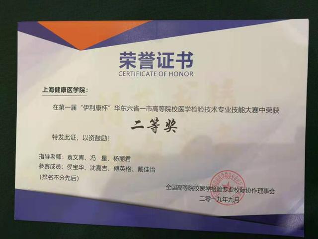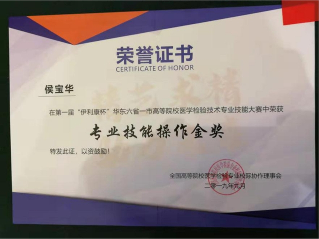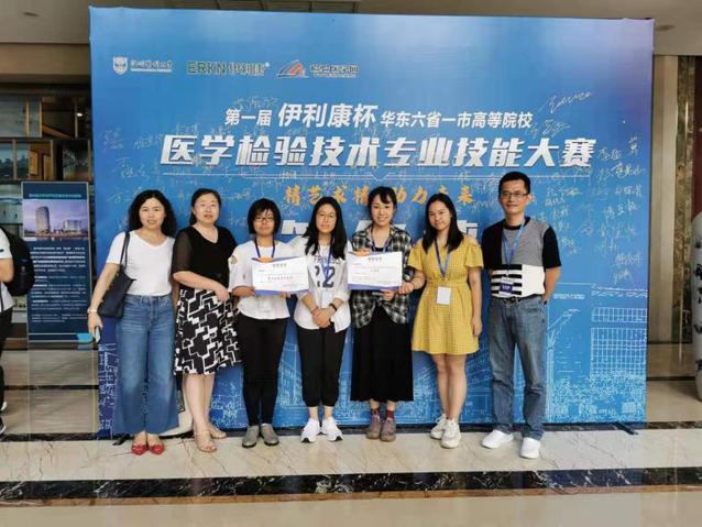 我校医学技术学院2016级本科医学检验专业的沈嘉吉、侯宝华、傅英格、戴佳怡四位同学,不畏强手,奋力拼搏,经过技能竞赛和知识竞赛两天的比赛,最终荣获团体二等奖,侯宝华同学获得专业技能操作金奖。它提升了我校在全国高等医学院校和检验行业的知名度和影响力。