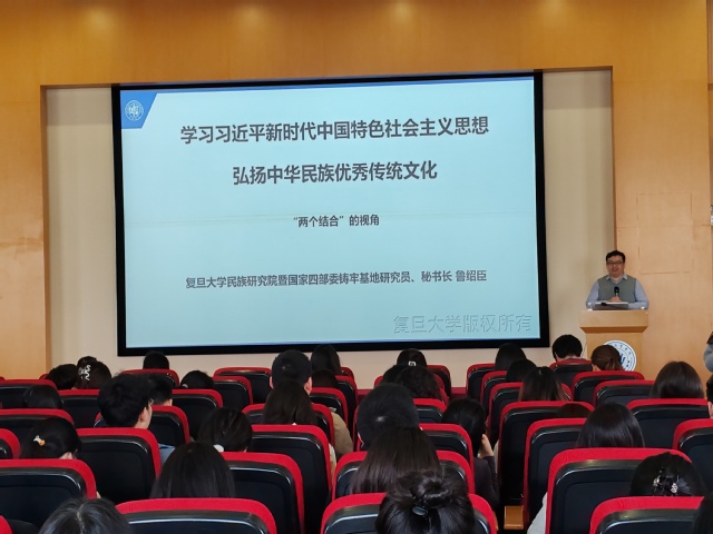 4月12日,复旦大学鲁绍臣副教授做专题讲座“学习习近平新时代中国特色社会主义思想 弘扬中华优秀传统文化”。鲁绍臣从中西方不同的交往原则、交往模式谈到中西方民族交流、民族治理的不同,继而引出“两个结合”的当代意义。他希望各位青年能够做好新时代中华优秀传统文化的传承者、践行者和传播者,坚定文化自信,传承中华文明,增强实现中华民族伟大复兴的精神力量。