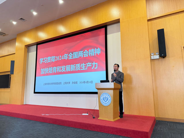 4月10日,上海市青年讲师专家团成员、上海大学孙会岩副教授作专题讲座“学习贯彻2024年全国两会精神 加快培育和发展新质生产力”。孙会岩副教授带领学员们回顾了2023年经济社会发展情况,分析了2024年经济社会发展的要求和任务,解答了如何在实践中贯彻落实好全国两会精神并非常详细地阐述了新质生产力的内涵、特征、作用。他希望同学们能够走在新质生产力的前列,学好知识,在发展新质生产力的道路上展现更多的担当,做出更大的作为。
