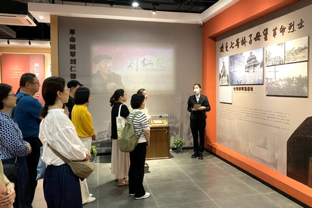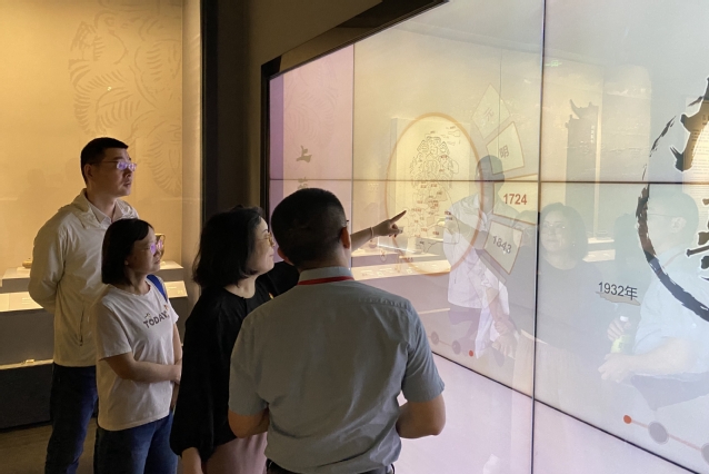 随后,医学影像学院一行来到闵行博物馆进行参观,闵行博物馆建筑围绕“与城市文化融合、与自然共生”的建设理念而成,通过丰富的文物、文献资料和现代多媒体展示手段,生动全面地展示了现闵行区版图内的地域历史发展脉络及璀璨多姿的民族乐器文化。在马桥文化展示厅、中国民族乐器文化展示厅、上海县七百年展示厅,教师们徜徉其间,深刻感受到了闵行地区人杰地灵、崇文厚德和在改革开放新时代开拓进取的勃勃生机,体会到了闵行地区历史的发展进程和沧桑变化。