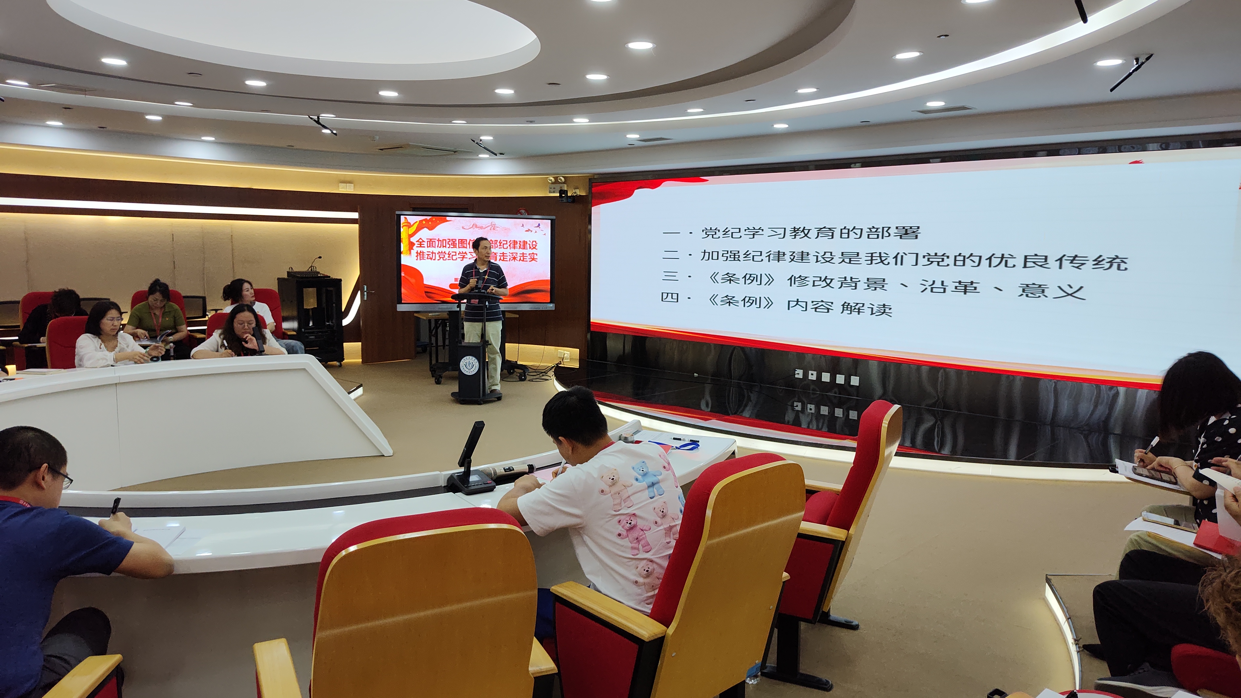 接着由党支部宣传委员刘晶老师领学,对《条例》中“工作纪律”和“生活纪律”两大内容进行重点讲解。刘晶老师通过列举负面清单、引用典型案例、对比新旧版内容等多种方式,详细介绍了《条例》第十章“对违反工作纪律行为的处分”和第十一章“对违反生活纪律行为的处分”的具体内容,帮助参加学习的全体党员、科级干部加深对“工作纪律”和“生活纪律”的理解。党员、干部务必要明晰言行的标尺和底线,要通过学习使铁的纪律真正转化为日常习惯和行动自觉,努力成为有政治、有方向、有形象、有人格的党员,成为优良党风的引领者、营造者、维护者。