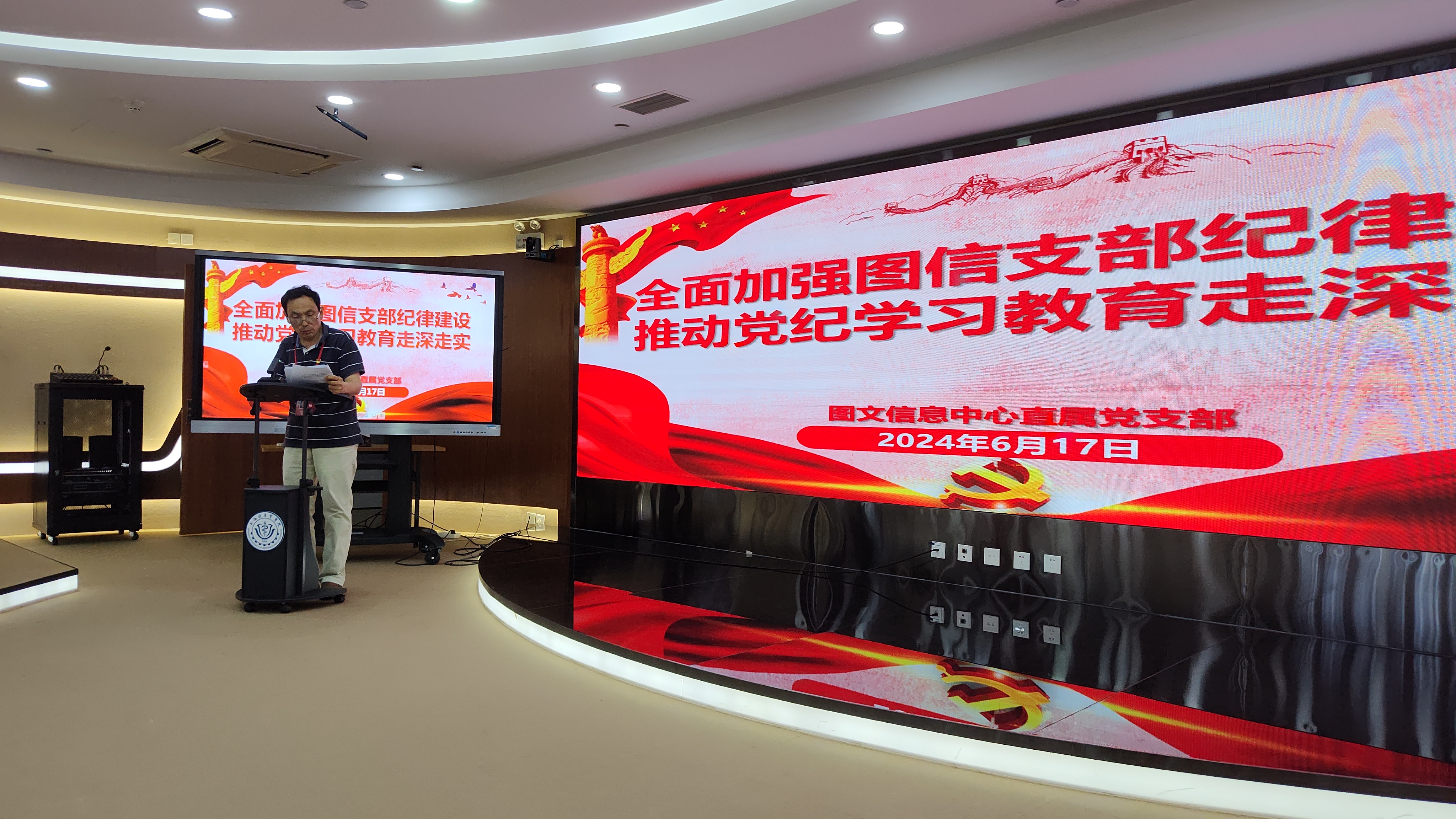 6月17日下午,图文信息直属党支部根据学校党纪学习教育工作提示和党支部党纪学习教育计划,组织党员开展党纪学习教育,集中学习《中国共产党纪律处分条例》(以下简称《条例》)。会议由党支部书记王云光主持,支部党员参加会议,非党员科级干部列席会议。