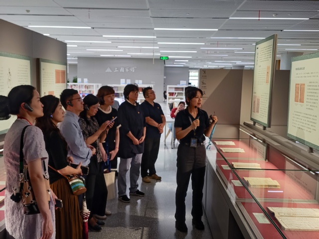 党支部成员首先来到上海图书馆东馆四楼家谱馆,参观“清白传家——廉洁文化主题文献展”。本次展览以廉洁家风为主题,以馆藏家谱为主,集多种文献,分为“正本清源、激浊扬清、新风正气”三个板块。通过这三个板块,带领大家深入了解廉洁家风的历史传承和当代价值。