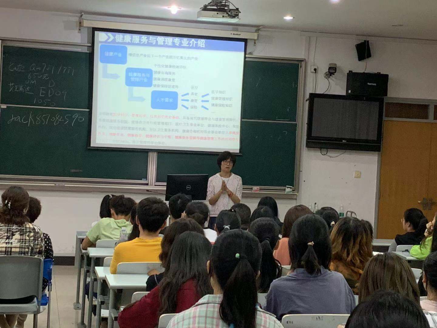 针对健康服务与管理专业新生的困惑,学院副院长万广圣带领专业团队教师于9月27日晚在6101教室集体亮相,4个健康服务与管理班级115名新生和辅导员参加了该专业的培养计划解读讲座。