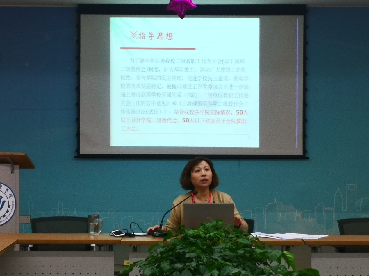 为了健全我校学院、教学部二级教职工代表大会(以下简称二级教代会)和全体教职工大会制度,全面推进院系二级教代会工作深入开展,扩大基层民主,调动广大教职工参与学院民主管理的积极性,校工会于2019年10月29日下午四点半在南苑7号楼403会议室,召开主题为“二级教代会暨工代会规范运作”的专题培训,相关学院、教学部的部门工会主席或委员出席会议,会议由工会常务副主席凌文惠主持。