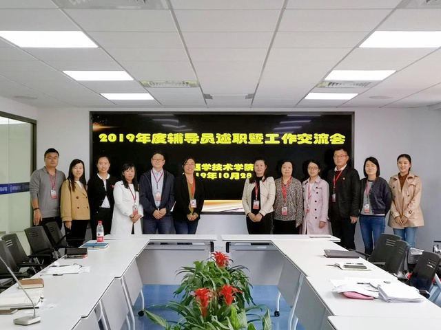 2019年度医学技术学院辅导员述职暨工作交流会于10月28日在北苑3号楼平台会议室举行,党总支书记兼院长刘敏娟、副院长陈凤贞、副书记高晓霞,工会主席陆俊杰,党建员何双泉出席本次工作交流会并担任评委。医学技术学院全体专兼职辅导员围绕带班情况、分管工作、特色工作等开展述职答辩。