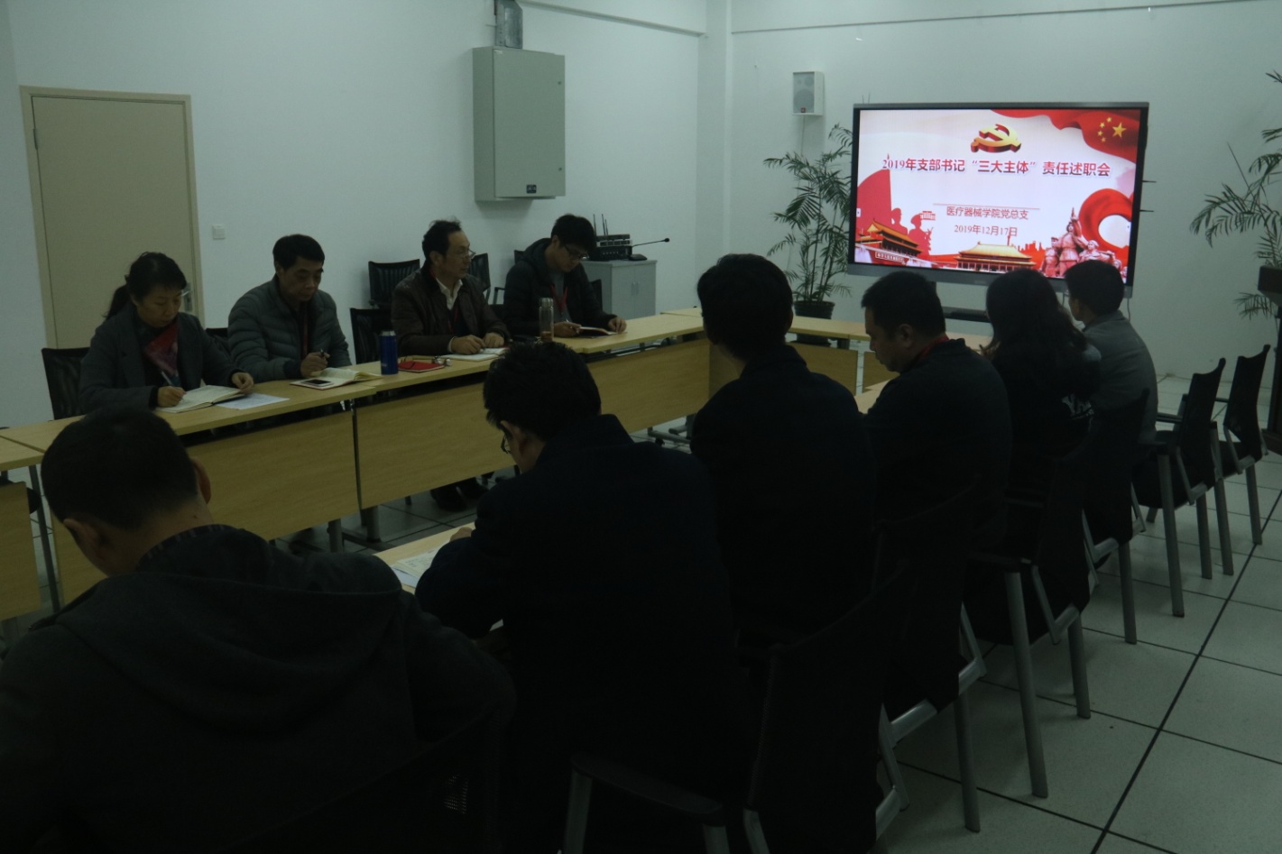 12月17日下午15:00,医疗器械学院在506会议室召开2019年度党支部书记落实“三大主体责任”述职评议会,学院党总支委员、各支部书记、党建员等参加了会议,会议由学院党总支王云光书记主持。