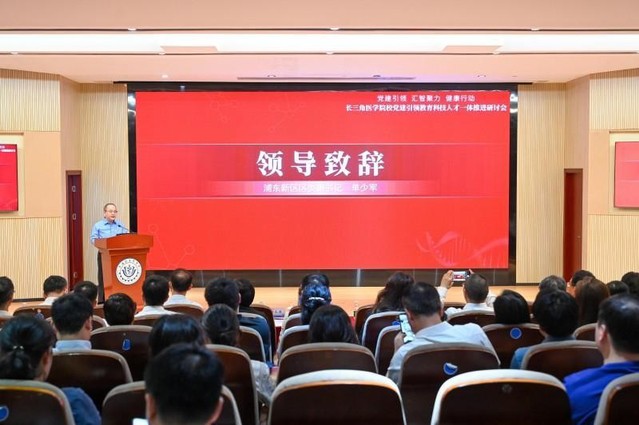 单少军在致辞中介绍了浦东新区优质医疗资源布局情况和在全力提高产业发展能级方面所取得成绩。他强调,浦东新区始终坚持党建引领,深刻践行人民至上、生命至上的理念,在全面提升医疗服务水平,加快优质医疗资源布局,面向未来推进卫生健康事业发展,离不开党建的引领,也离不开教育科技人才同向发力,共同赋能。他表示,医学院校作为教育科技人才的三方交汇点,具有培育人才、赋能创新的节点式、枢纽式重要作用。浦东新区竭诚欢迎长三角医学院校来浦东交流合作,共同深化医产融合,实现跨区域协同联动;同时欢迎各院校培养的青年人才到浦东创新创业,浦东新区将竭尽所能支持长三角各类医学院校、医疗机构和企业在浦东发展壮大,共享引领区发展红利。