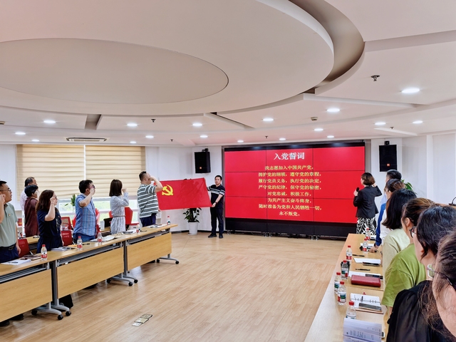 紧接着,活动进入庄严时刻。杜峥带领全体党员,面向鲜红党旗高举右拳,重温入党誓词。誓言铿锵,震撼人心,表达了对党的无限忠诚与坚定信念。