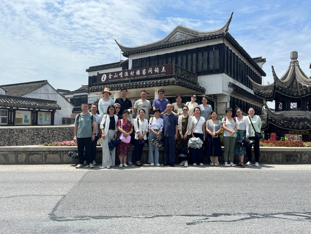 老师们怀着激动的心情来到了位于上海金山区的金山嘴渔村。一走进老街,青砖、黑瓦、马头墙的明清风格建筑就映入眼帘,安静的古街仿佛在静静地述说着渔村曾经的辉煌和故事。老师们被建筑中蕴含的传统文化所吸引,大家纷纷驻足观察,互相探讨,感叹中国文化的博大精深。弯弯曲曲的木头栈桥衬托着河景,江南的独特风景悄然的出现在眼前,老师们在这里互相拍照留念。一整面渔民画长廊,形象生动地展现出渔村的发展变迁;渔民老宅内的陈设和渔具馆的各种渔具,更是让老师们仿佛穿越到了你捕鱼、我织网的渔民生活。