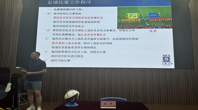 上海市足球协会裁判监督顾建军讲师以丰富的执法经验,生动讲解了越位犯规的判定要点。他通过经典赛事片段,展示了不同情境下的越位判罚技巧,并分享了国际足联最新的越位规则解读。