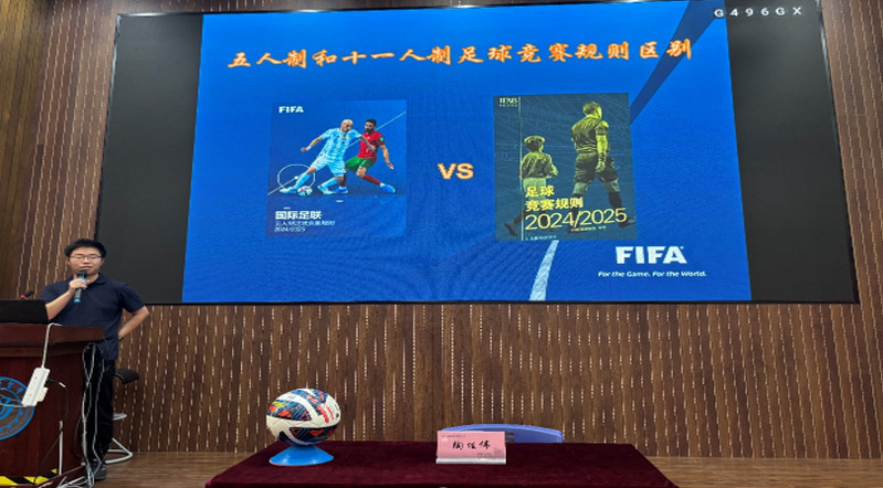 浦东足协裁判监督陶佳伟讲师专门就五人制足球竞赛规则进行了详细解读。他对比了十一人制和五人制比赛规则的区别,特别强调了五人制比赛快速攻防转换中的执法要点。