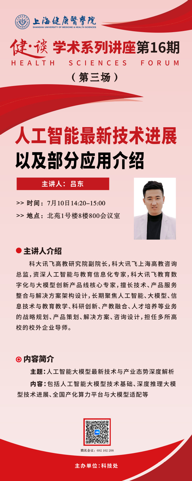【健·谈】第16期学术系列讲座共有3场,将于2025年7月10日13:00在北苑1号楼800会议室举办。