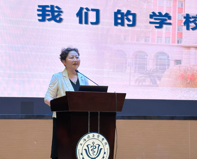 大会伊始,医学技术学院党政班子成员就各自分管的工作作了简要介绍。随后,姚谷芳代表学院全体师生向2025级新同学和新生家长的到来表示热烈欢迎。她从“我们的学校”“我们的学院”“我们的未来”三个方面全面介绍了校史校情和院史院情,对校训、院训的内涵作了系统阐释。最后,她对同学们提出了三点期望:一是要实现思想转化,做“有为”的自己;二是要做好“角色转换”,做自己的“驾驶员”;三是要完成“状态转变”,做自己的“出题人”。