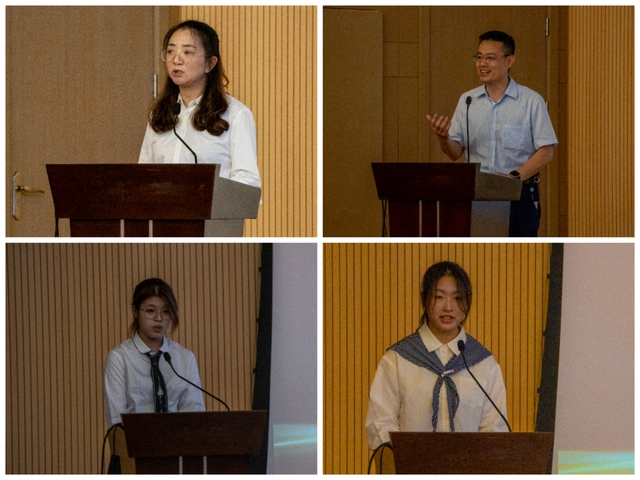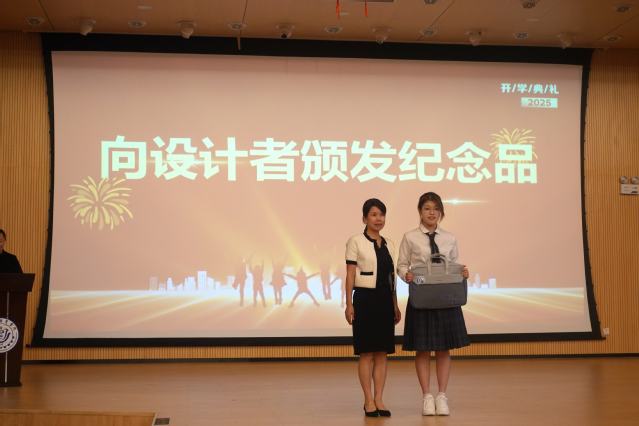 学院院训、院徽发布仪式将开学典礼推向高潮。学院党总支书记朱清宣读并展示院训院徽,向设计者颁发纪念品。朱清强调,院训、院徽体现并象征了“理性专业+温暖仁心”的学院气质和影像人精神内核,希望大家以院训院徽传递的精神为指引追求卓越、勇攀高峰。2023级九院联合培养班崔朱玮同学作为院训院徽的设计者向新生介绍了她的设计理念和创作过程,饱含对学校和学院的深厚感情。2025级智能影像工程2班叶文渊作为新生代表发言,自信昂扬、意气风发,她讲到:“我们将以‘察微见著’的态度钻研影像技术,以‘影鉴仁心’的信念守护生命健康,承担起新时代影像人的责任与使命,做一名优秀的基层卫生健康的守护者。”