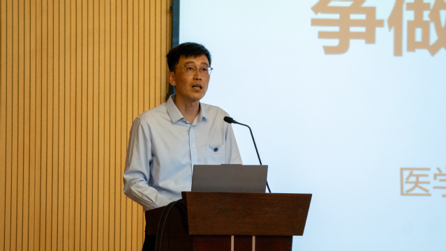 党总支副书记、院长李晓欧在致辞中勉励大家要“拥抱青春梦想、争做医影先锋”,他从教育理念、师资队伍、教学条件、教学创新等方面介绍了“我们的家”;从七十多年办学历程积累的文化底蕴回顾了“我们的传统”;从不同年级的阶段性培养目标、国际交流合作、技能竞赛和创新创业大赛等介绍了“我们的学习”;从国家战略、行业需求的角度强调了影像人的责任与担当,并勉励新生牢记习近平总书记“心有所信,方能行远”的嘱托,在学思践悟中奋发有为,成长为有根有魂的新时代青年。