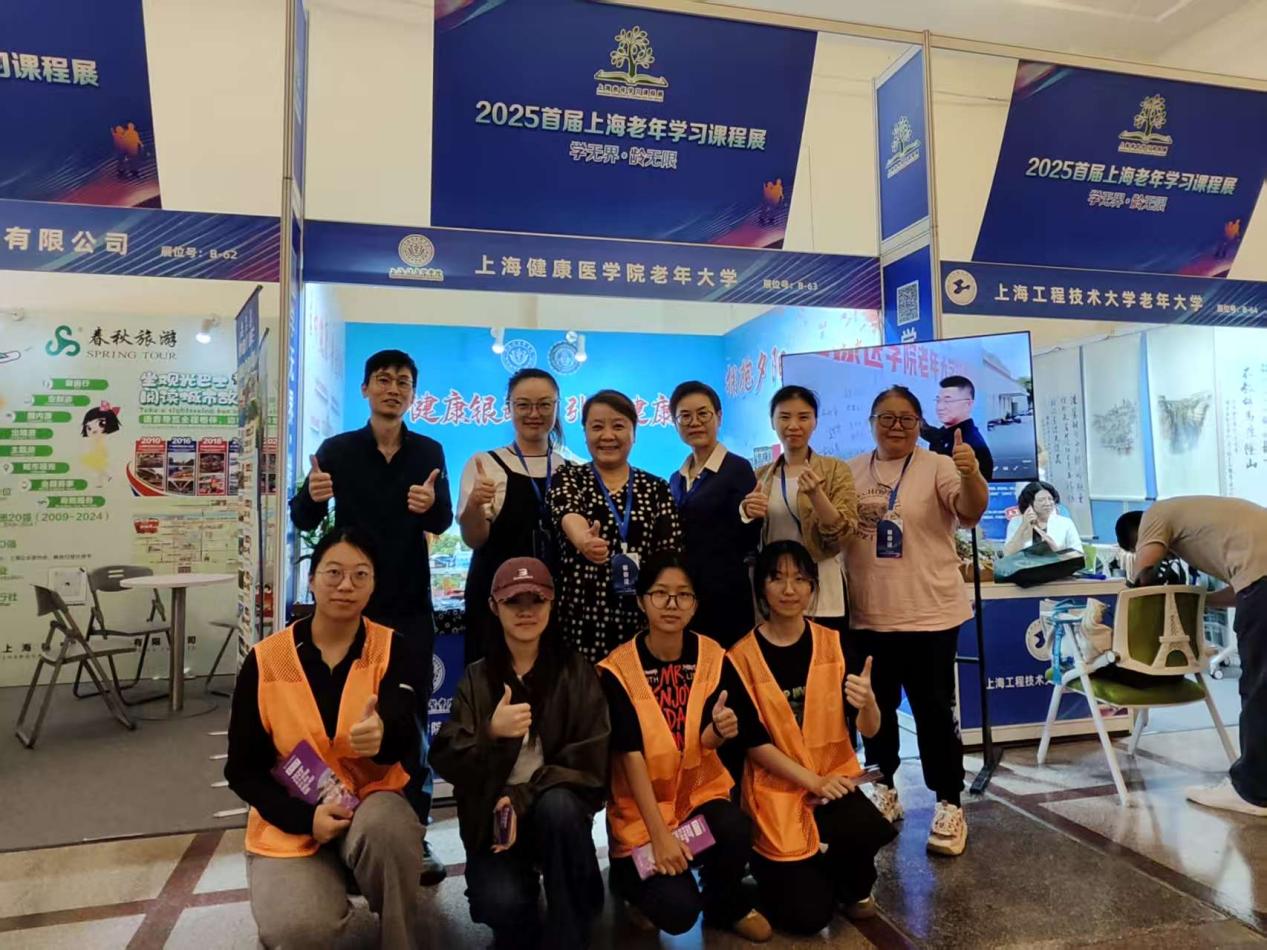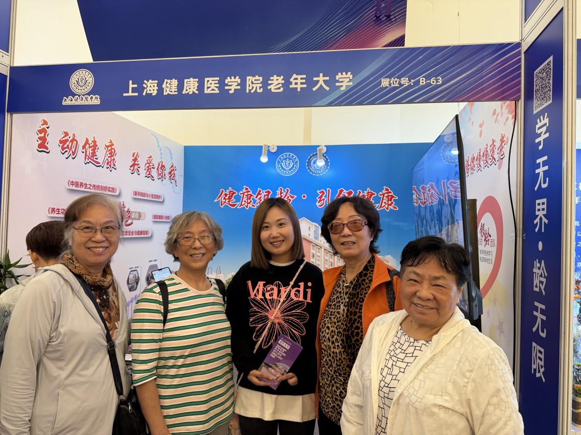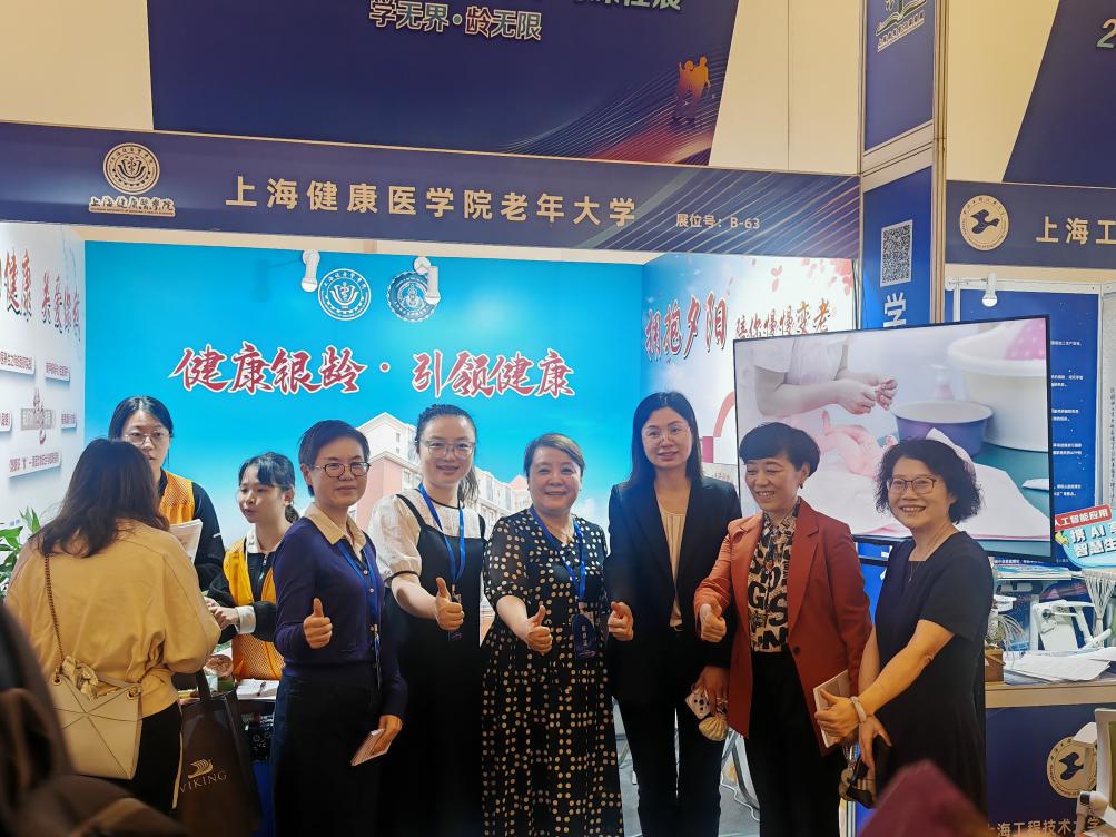 展会期间,市教委终身教育处王娟副处长与市老年教育工作小组办夏瑛主任莅临我校展台参观指导,对学校在健康老年教育领域的实践探索给予高度肯定。同时,我校展台吸引不少专业观展团体与国际友人业务咨询与洽谈。作为敬老节活动之一,校离退休工作部也组织部分退休教职工前来观展。