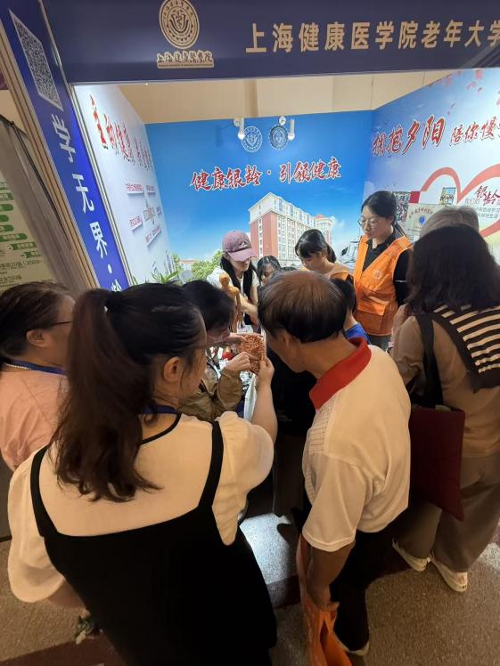 展区围绕“健康银龄·引领健康”的理念,分“主动健康·关爱你我”与“拥抱夕阳——陪你慢慢变老”两大版块,以明快清新的设计和互动体验吸引了众多观众驻足咨询,积极报名秋季课程。其中,“主动健康·关爱你我”系列展现了学校在健康照护、康复养生、营养指导等方面的教学成果与服务场景,充分体现“健康+教育”的融合理念,赢得现场嘉宾与市民的广泛好评。“拥抱夕阳——陪你慢慢变老”版块着重介绍即将推出的《今天开始把自己重养一遍——中老年身心怡养系列课程》,旨在以积极心理学为核心理念,帮助老年学习者通过情绪调适和心理赋能实现“身心共养”。老年心理课程依托上海市心理学会落地我校的“生命教育研训实践基地”,助力老人心理健康理念走进课堂、走进社区、走进大众,真正服务于“健康中国”战略的落地与实施。