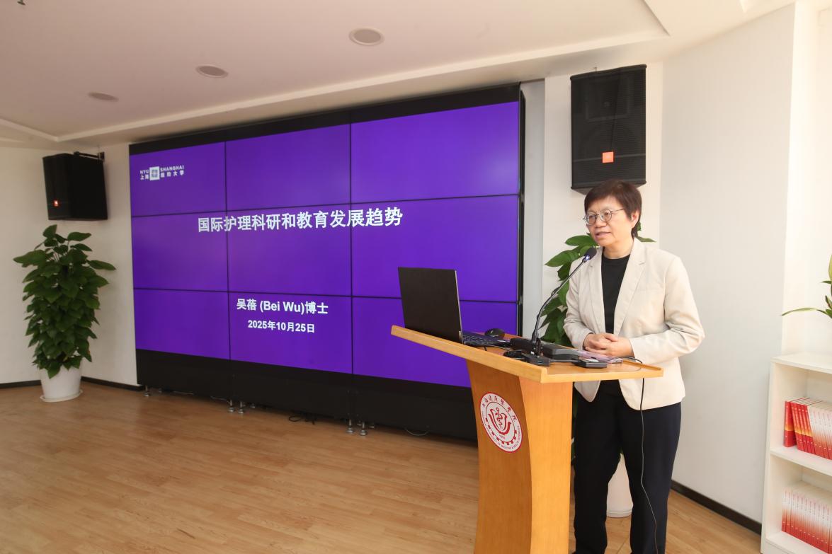会议特邀上海纽约大学教务长、全球杰出公共卫生学教授吴蓓作《国际护理科研和教育发展趋势》专题报告。吴教授从全球老龄化、失智症照护、老年照护中的关键挑战、护理教育改革等前沿领域出发,分享了国际护理科研与教育的最新动态,为集团国际化发展与人才培养模式创新提供了重要参考。