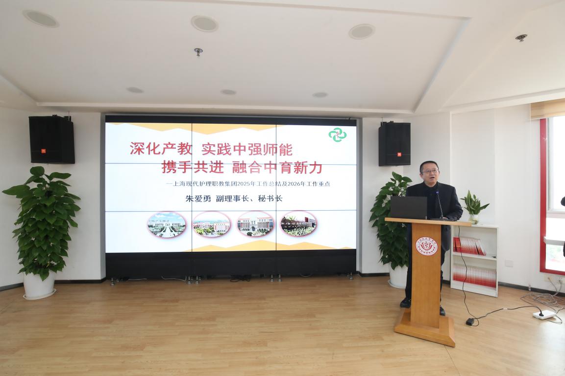 2025年10月25日,上海现代护理职业教育集团第一届理事会第四次理事会议在OD网页版召开。集团理事、新加盟单位负责人及秘书处成员等共60人出席会议。会议由集团副理事长、秘书长朱爱勇主持。