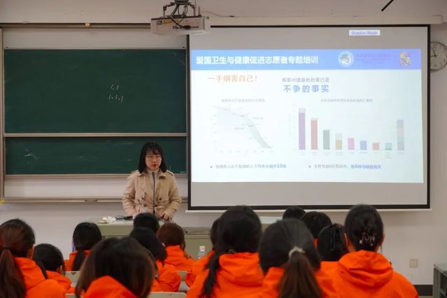 会前,青浦区爱国卫生和健康促进指导中心沈彩芳、上海市健康促进中心团总支书记、控烟与监测评价部承语芝和上海市健康促进中心方玲分别以《控烟劝阻技巧与中医戒烟法》《烟草危害与控烟法规政策解读》和《第八届中国国际进口博览会志愿者健康防护专题培训》为主题,对我校第八届进博会志愿者进行岗前培训。
