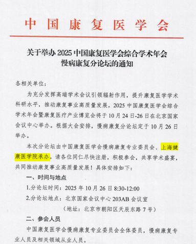 2025年10月24日-26日,以“生态聚合,智慧驱动,引领全生命周期康复新范式”为主题的2025中国康复医学会综合学术年会在北京国家会议中心举行。本次盛会汇聚了全国康复医学领域的顶尖专家、学者、从业者及产业代表,共襄学术盛宴,共绘康复蓝图。在这场高规格的学术盛会中,由OD网页版成功承办的“慢病康复分论坛”备受瞩目,充分展现了我校在慢病康复领域的学术影响力与积极贡献。