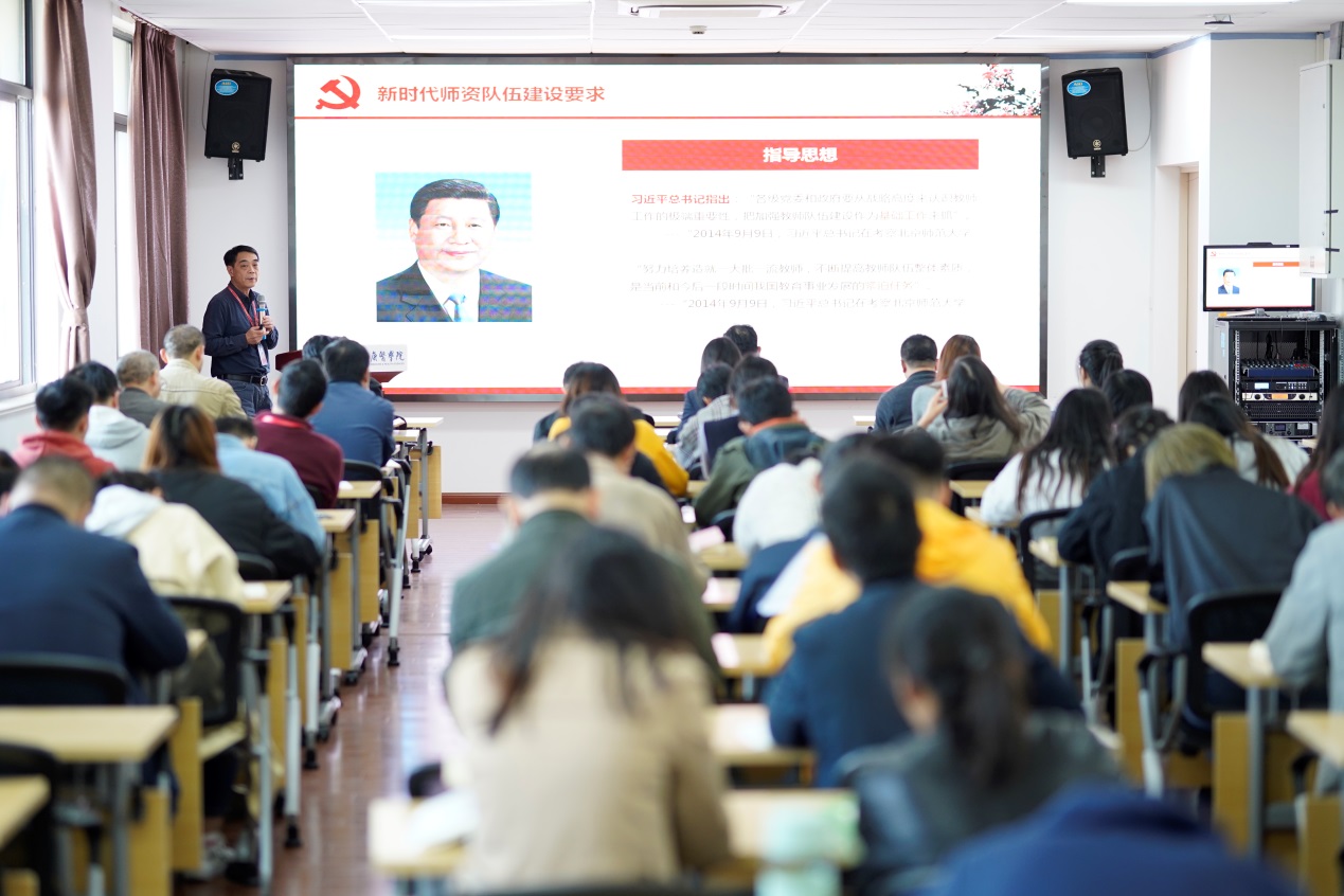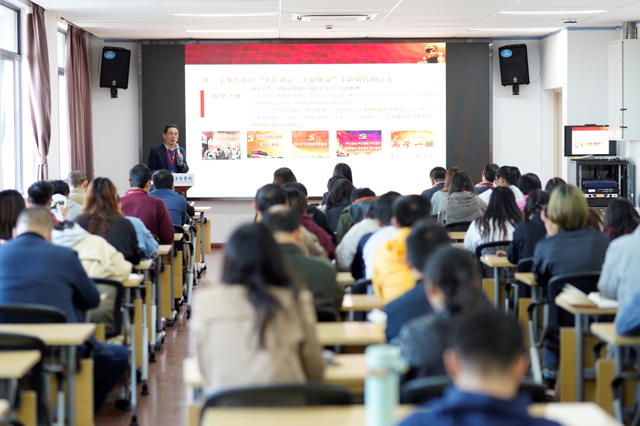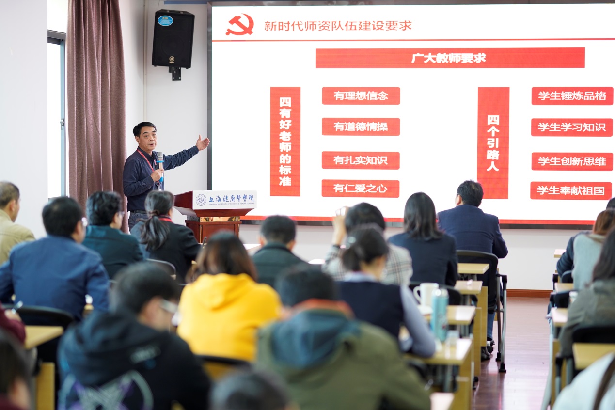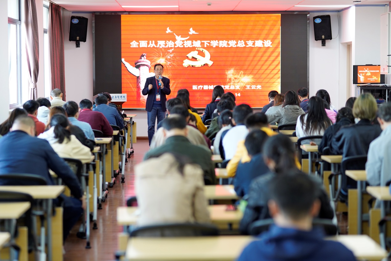 胡兆燕院长则从新工科智能医疗与师资队伍建设方面给我们上了一节主题为“心怀责任,勇于担当”的党课,他首先提出新时代师资队伍的建设要求,2014年9月9日,习近平总书记在考察北京师范大学时指出:“各级党委和政府要从战略高度来认识教师工作的极端重要性,把加强教师队伍建设作为基础工作来抓”,建设高素质专业化教师队伍,就要把习近平总书记提出的明确要求落到实处。学院现已有本科专业4个:生物医学工程、临床工程技术、医疗产品管理及数据科学与大数据,在校生1441人;专科专业尚有7个,在校生759人,2018年起调整为2个专科专业招生:精密医疗器械技术、医疗器械管理与维护;专业学位硕士生联合培养点1个:生物医学工程,在校生27人。学院肩负2227人才培养任务,以及专业调整任务。学院师资总量不足,特别是高层次的学术骨干和学科带头人紧缺,这已成为影响学院发展的最大瓶颈,要加大培养力度。