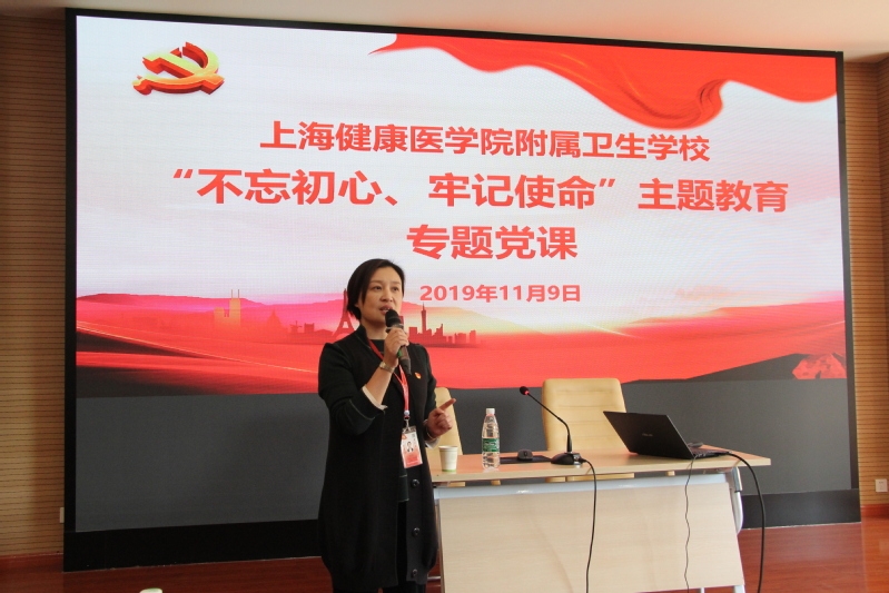 11月9日下午,围绕“立德树人”和“三全育人”,附属卫校校长、党总支副书记汤磊在一教报告厅给全校党员干部及教师上了一堂生动的“不忘初心、牢记使命”主题教育专题党课。校领导、全体党员干部、教师及主题教育工作小组成员参加学习。党总支书记钱艳主持。