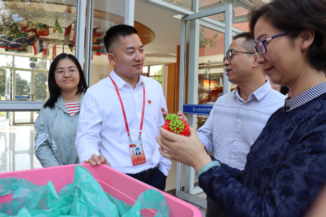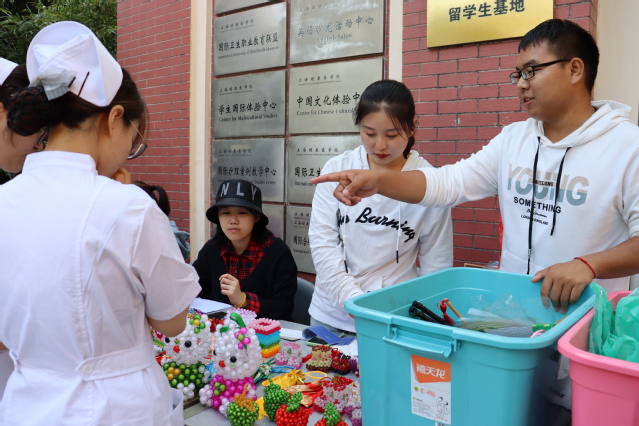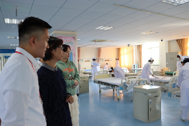 仪式结束后,护管学院团总支宋飞老师陪同二精中心来访人员参观了我校护理实训中心,并来到了“精神健康主题宣传进校园”义卖活动现场与学生交流。