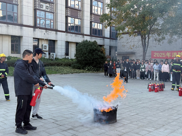 在集合广场,校保卫处已提前布设好灭火器、灭火毯等专业装备。接着,保卫处负责人慈兴强结合近期全国高校典型火情案例,向我院师生详细讲解了常见的火灾隐患、火险的处置方式以及消防装备的具体操作方法。