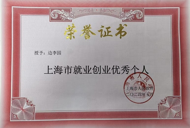 2024年5月:上海市就业创业优秀个人(上海市人民政府)