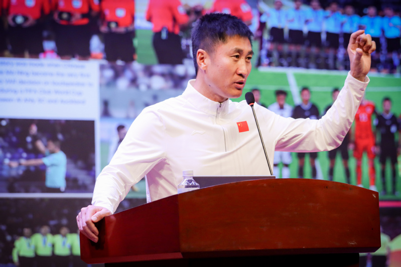 面对现场年轻学子与裁判同行,马宁指导结合自身经历,阐述了坚持梦想的重要性。他谈到,职业道路上难免遇到困难与低谷,但每一次“危机”中往往蕴藏着“机遇”。他以自己执裁关键比赛,克服压力和病痛在国际赛场为国争光的事例,鼓励大家保持乐观,在逆境中沉淀积累、锤炼能力,“当机会来临时,才能稳稳抓住”。