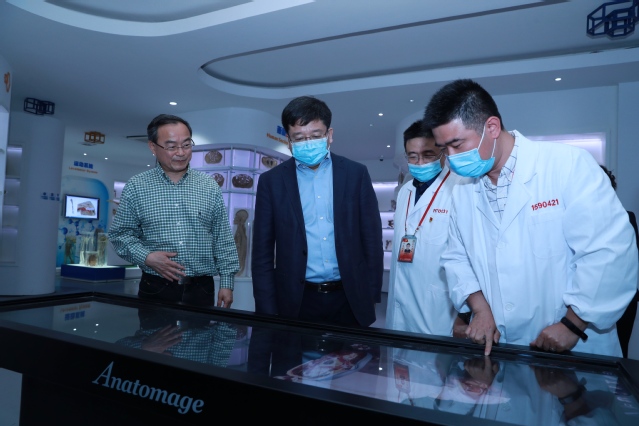 陈群一行首先参观了北苑基础医学互动实训中心、上海现代护理开放实训中心和健康互动实训中心,对学校实训中心建设和应用型人才培养给予充分肯定,随后在南苑图书馆五楼大厅,陈群副市长主持召开了调研会。
