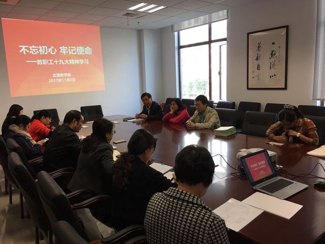 11月2日下午,文理教学部组织教职工在南苑2号楼302会议室召开了学习党的十九大精神座谈会。座谈会由秦禹权书记主持。
