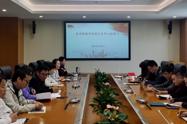 3月29日中午,医学影像学院党总支中心组在南苑仁影楼306会议室开展习近平总书记在党史学习教育动员大会上的重要讲话专题学习,本次学习由党总支书记刘红主持,党总支宣传委员、专职党建员谭松珊担任主讲,校党委宣传部文明办副主任解晓峰列席中心组学习。