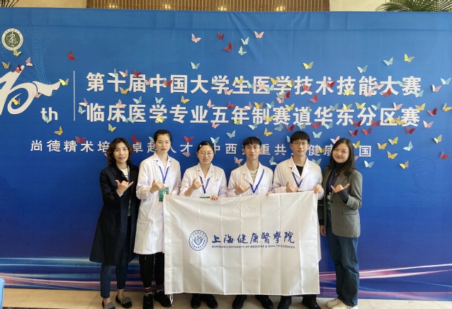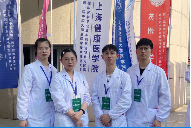 临床医学专业五年制赛道华东分区赛由安徽医科大学承办,共有来自华东地区46所开设临床医学五年制专业的高校参赛,强手如林,竞争异常激烈。我校临床医学专业2016级四名正在第六人民医院临港院区实习的学生代表学校出征华东地区分区赛。作为首次参加该项赛事,同学们与各兄弟高校同台竞技,沉着应对,稳定发挥,顺畅地完成各项赛道考核内容,展示了健康学子的风采。