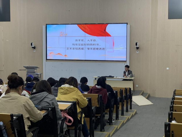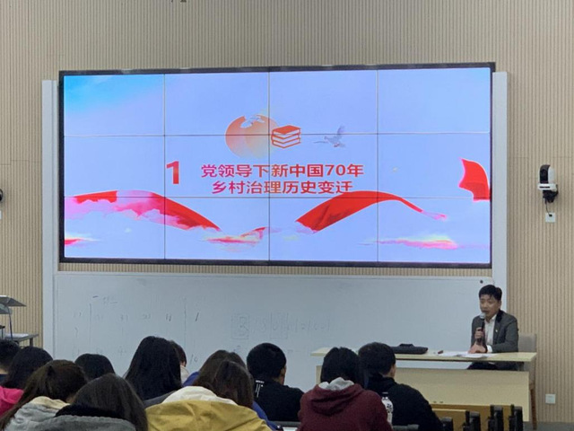 姚辉书记以“党领导下新中国70年乡村治理历史变迁”为切入点,选取经典案例,介绍了新中国70多年来乡村治理的历史演变,从“村舍合一”、“政社合一”、“乡政村治”到“三治结合”,让同学们感受到我国农村农业的发展缩影,领略到我国国家治理体系与治理能力现代化的新镜像。